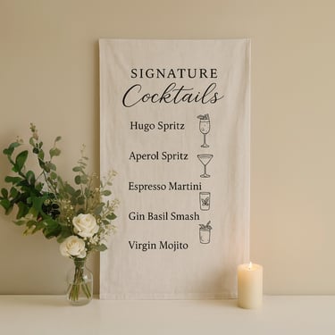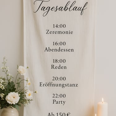 Romantische Bewegung in jedem Windhauch. Handgemalte Beschriftung auf hochwertiger Baumwolle, Leinen oder Seide – ideal für Hintergründe, Willkommensschilder und Sitzpläne.