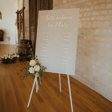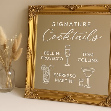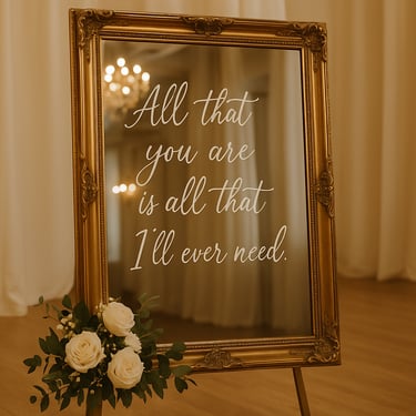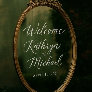 Elegant, reflektierend und unvergesslich. Von vintage-vergoldeten Rahmen bis zu klaren, modernen Kanten – Spiegelschilder verleihen Willkommensschildern, Sitzplänen und Menüs einen Hauch von Glamour.
