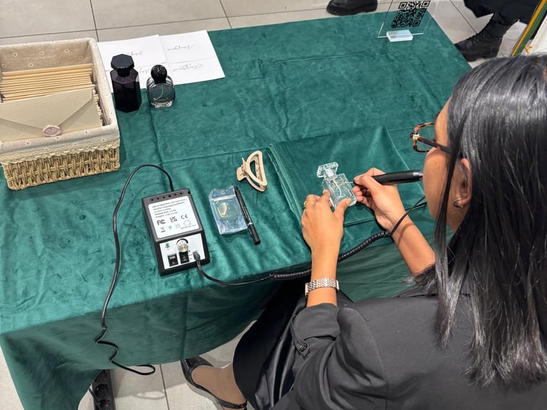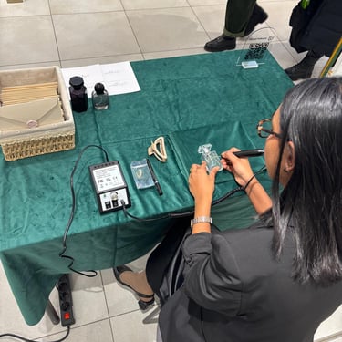 Laden Sie Schriftgeist zu Ihrem Event oder in Ihren Raum ein – für ein unvergessliches Erlebnis. Mit Live-Kalligrafie und Gravur erhalten Ihre Gäste personalisierte Einzelstücke – direkt vor Ort und eigens für sie angefertigt.
