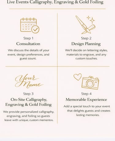 Personalized calligraphy created live for your guests — poetic, intimate, timeless.