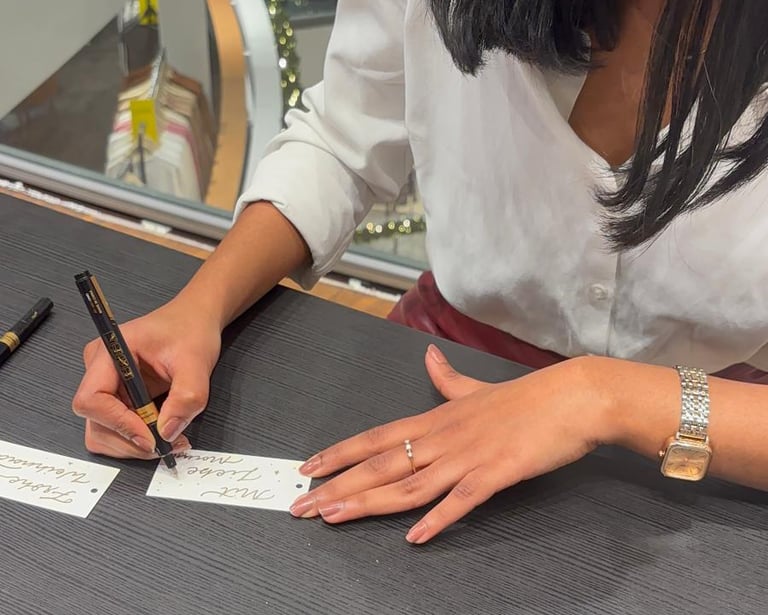 Ob Café-Pop-up, Produkteinführung, Hochzeit oder Firmenevent – Live-Kalligrafie macht Ihre Veranstaltung bedeutungsvoll, unvergesslich und zutiefst menschlich.